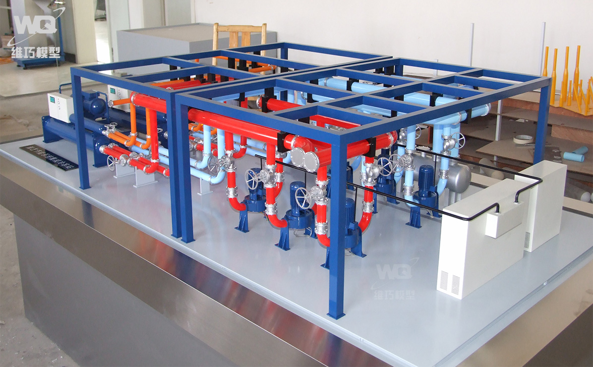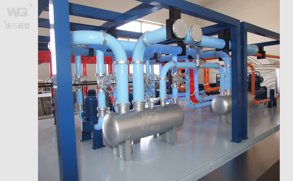 模型主體材質(zhì)ABS工程塑料,CNC雕刻機(jī)加工制作,部件精細(xì)打磨,先底漆再分色金屬烤漆處理,真實(shí)原比例縮?。ň唧w顏色根據(jù)甲方要求及3D圖為準(zhǔn))。LED跑馬燈模擬制冷劑流向